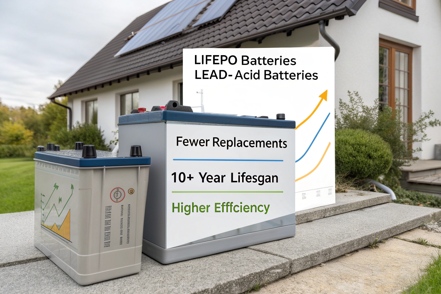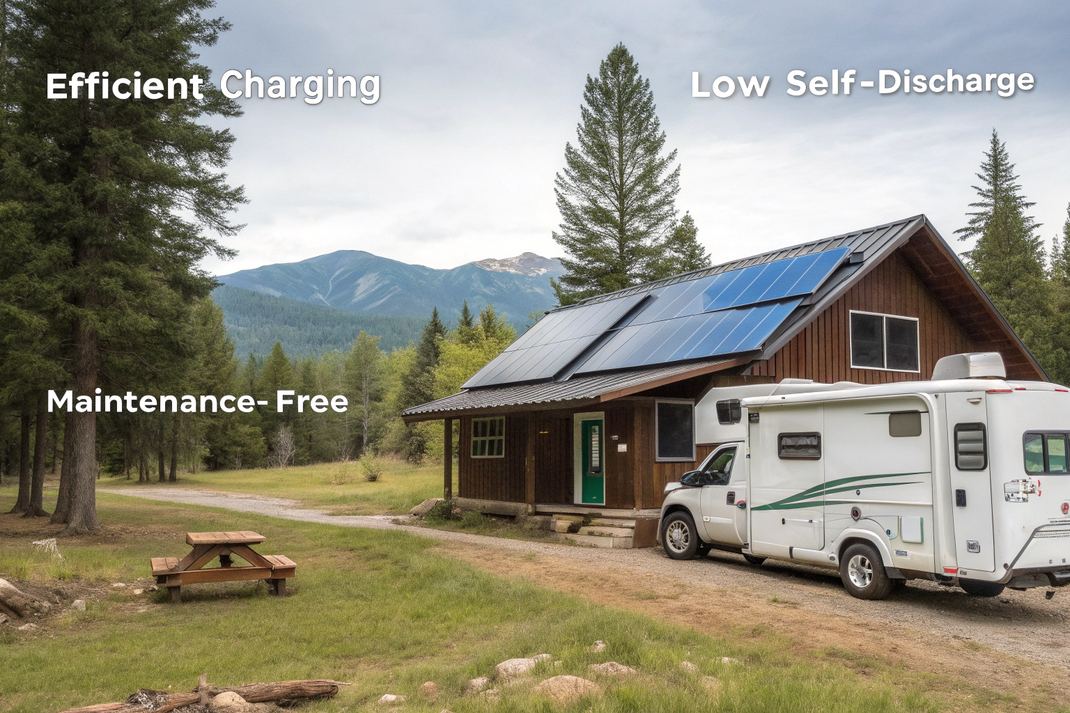 LiFePO4 batteries are perfect for solar and off-grid storage because they charge efficiently, lose little power when idle, and require no maintenance.