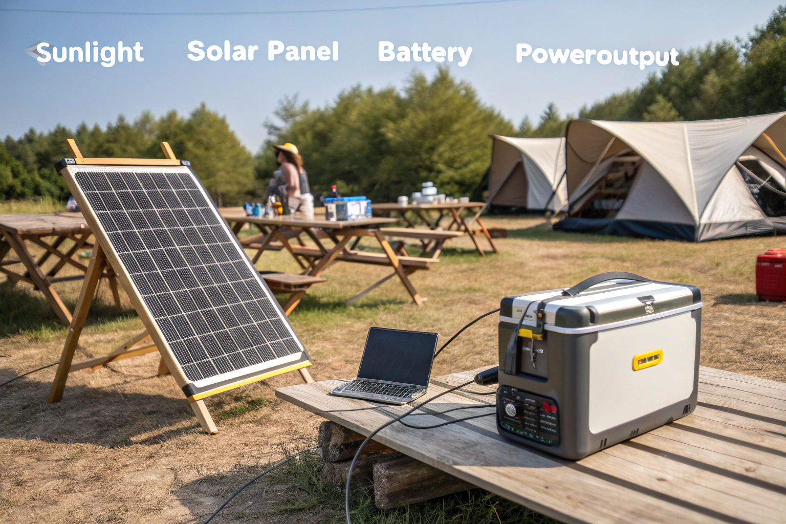Here’s what happens step-by-step: First, solar panels absorb sunlight and convert it to direct current (DC). That current flows into a charge controller, which protects the battery from overcharging. The energy is stored in a lithium or LiFePO4 battery. When you need to use the power, an inverter converts it into alternating current (AC), which most home appliances use. Some devices also run directly on DC ports or USB.