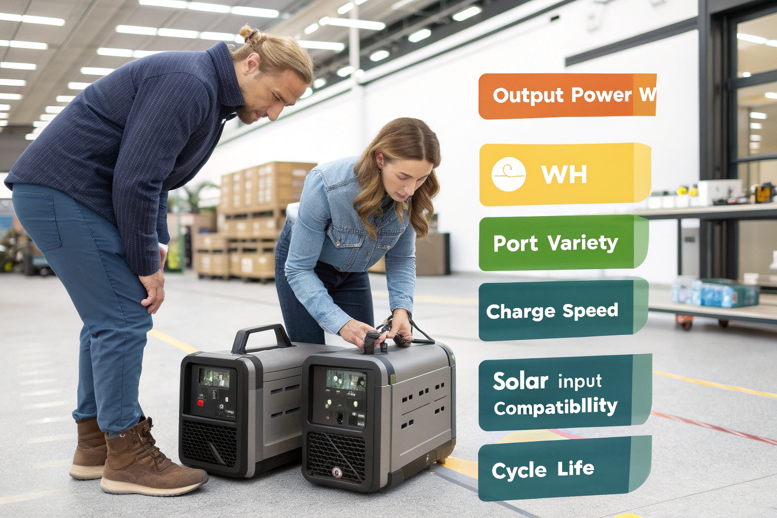 Look at battery capacity, output power, port options, charging speed, solar panel compatibility, and the number of cycles the battery can handle.