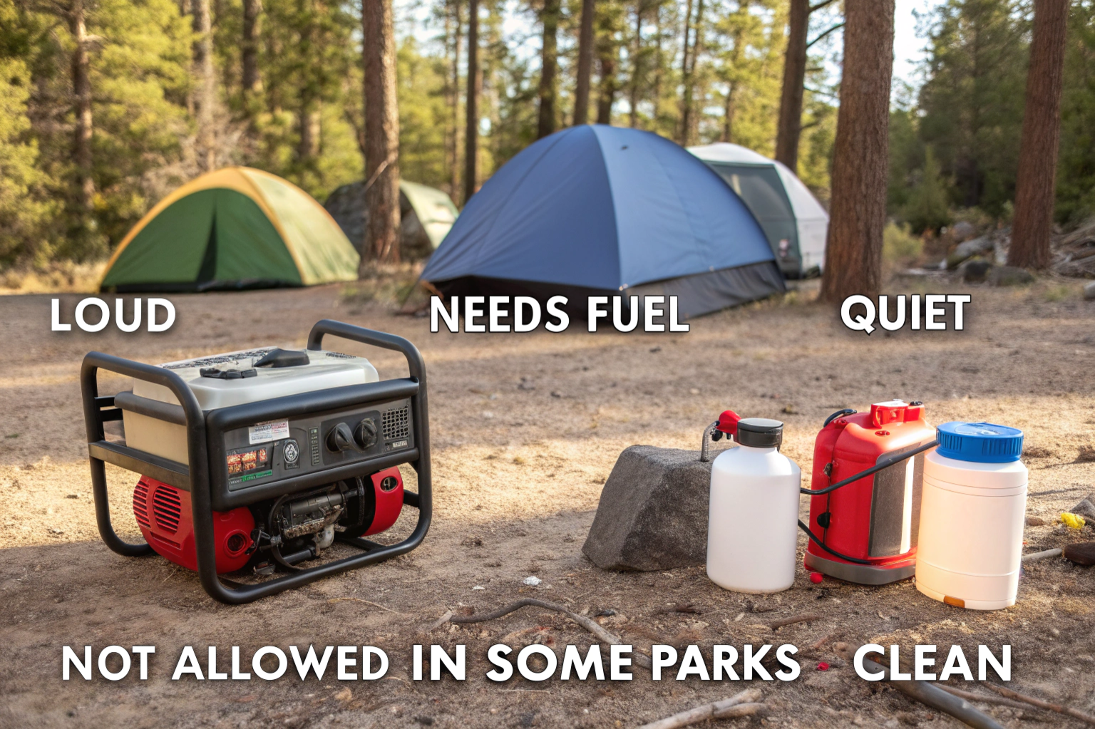 Yes, fuel generators still work well for high-demand tools or when sunlight isn’t reliable—but they’re loud, require fuel, and are banned in some parks.